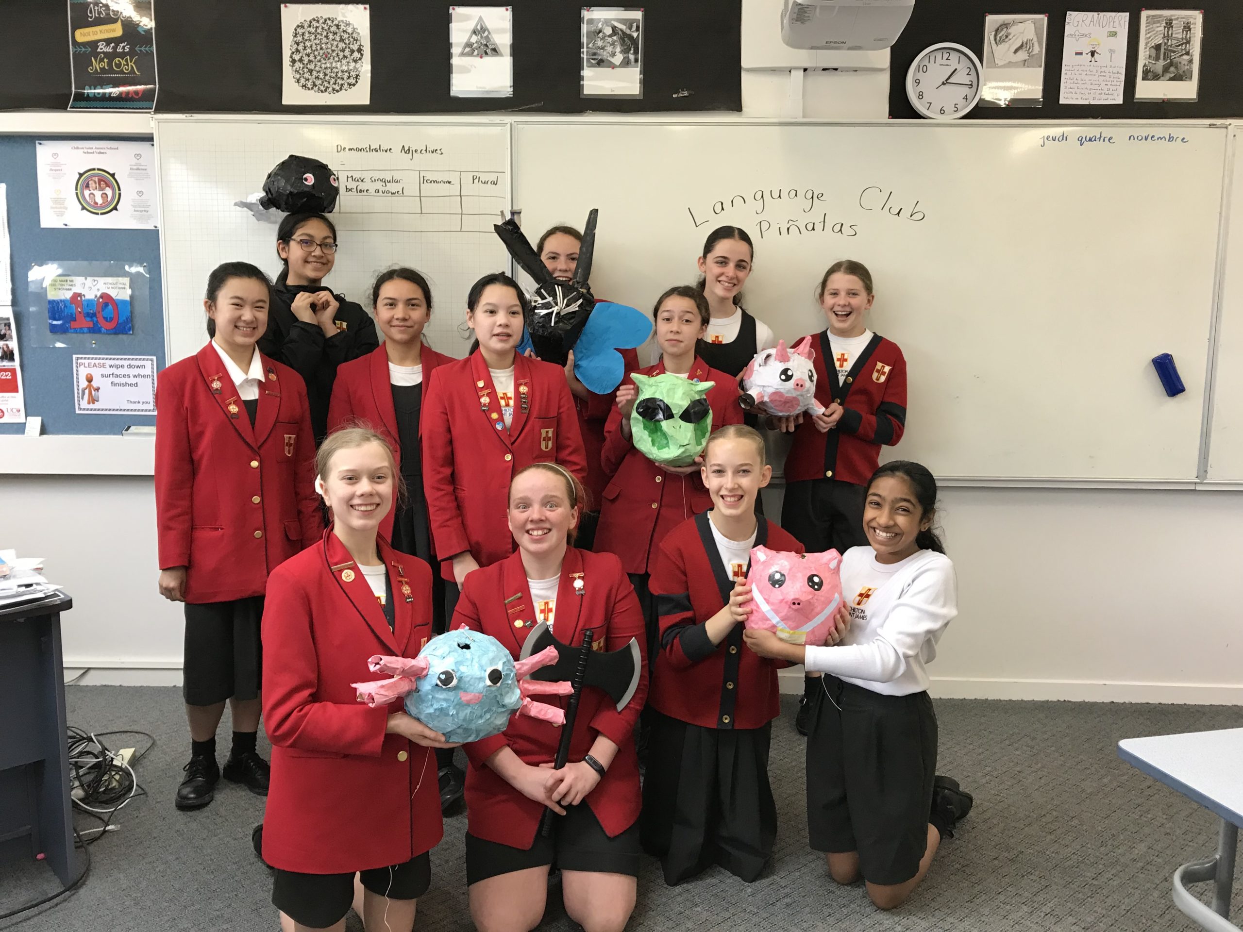 In Language Club, we have been making piñatas during Term 3 & the beginning of Term 4 and have just had the bashing open ceremony today at lunchtime.