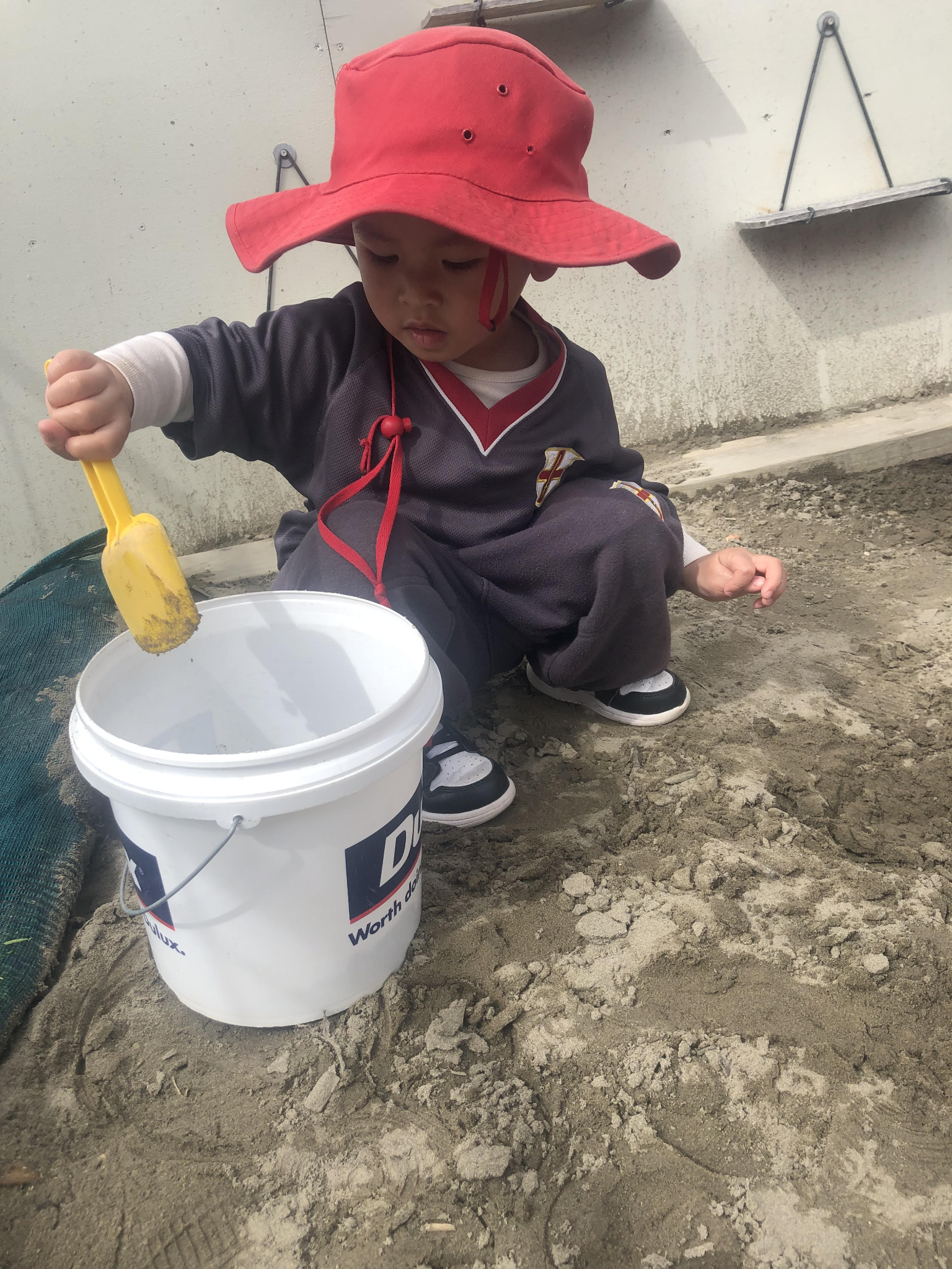 The Penguin group have been really enjoying getting outside and exploring with all of their senses – and what better place for this than the sandpit!  Sand play is a great way for children to explore a variety of working theories, including science concepts such as volume, weight and measurement.  Sandpit exploration also encourages children to develop social skills for taking turns and negotiating as they ‘make cakes’ and various other items together, sharing the equipment as they do so.