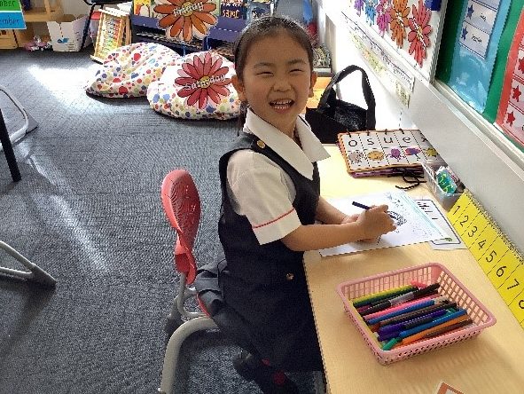 Firstly, they brainstormed their ideas while they drew their picture. Next, they decided what they wanted to write. Finally, they approximated writing the words they needed, to express their ideas. Approximating involves saying each word and listening carefully to the sounds they can hear, then writing the letters that record those sounds. On entry to school, girls begin with daily one on one supported writing, moving to independent writing as their letter/sound knowledge and confidence grow. They use the alphabet card to help them, as well as their knowledge of the words they have learnt to spell. Over the next few days, the girls are going to publish their writing so that we can put it on display and share their thoughts.