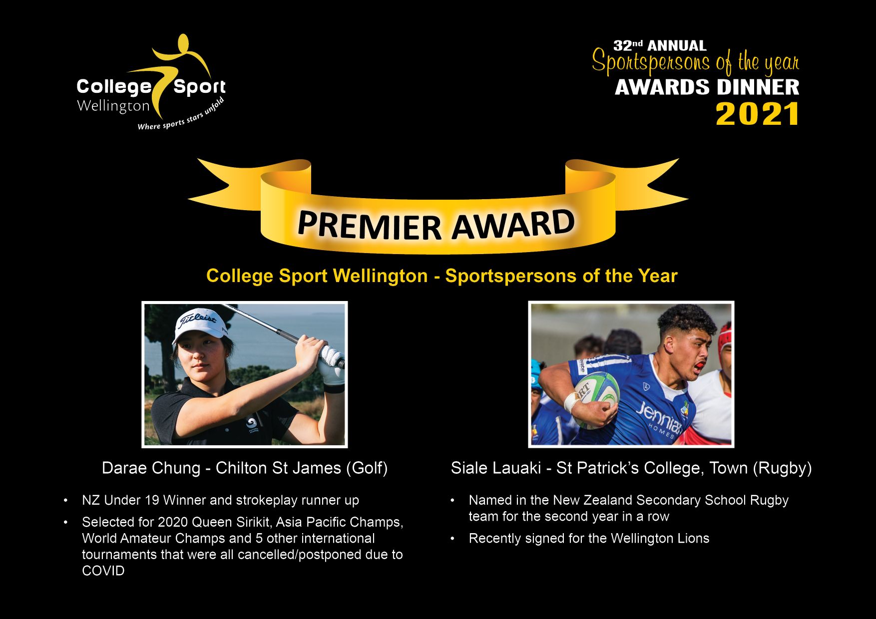 The College Sports Wellington SPOTY’s (Sportspersons of the Year) awards were streamed live on-line on Wednesday night. The on-line event replaced the usual Awards dinner evening which couldn’t be held due to Level 2 restrictions. While we were saddened we couldn’t be there in person to support and enjoy the celebration with our 4 Finalists, we watched with much pride as Chilton took top honours!!